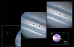While hunting for volcanic plumes on Io, NASA's Hubble Space Telescope captured these images of the volatile moon sweeping across the giant face of Jupiter. Only a few weeks before these dramatic images were taken, the orbiting telescope snapped a portrait of one of Io's volcanoes spewing sulfur dioxide "snow."
