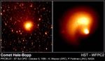 The Hubble observations will be used to determine if Hale-Bopp is really a giant comet or rather a more moderate-sized object whose current activity is driven by outgassing from a very volatile ice which will "burn out" over the next year. Comet Hale-Bopp was discovered on July 23, 1995 by amateur astronomers Alan Hale and Thomas Bopp. Though this comet is still well outside the orbit of Jupiter (almost 600 million miles, or one billion kilometers from Earth) it looks surprisingly bright, fueling predictions that it could become the brightest comet of the century in early 1997.