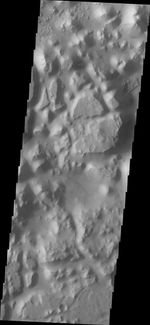 Note: this THEMIS visual image has not been radiometrically nor geometrically calibrated for this preliminary release. An empirical correction has been performed to remove instrumental effects. A linear shift has been applied in the cross-track and down-track direction to approximate spacecraft and planetary motion. Fully calibrated and geometrically projected images will be released through the Planetary Data System in accordance with Project policies at a later time.
