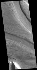 Today's VIS image shows a small portion of Kasei Valles. Kasei Valles is a large outflow channel system located between the Tharsis volcanic highlands to the west and the lower elevation Chryse Planitia to the east.
