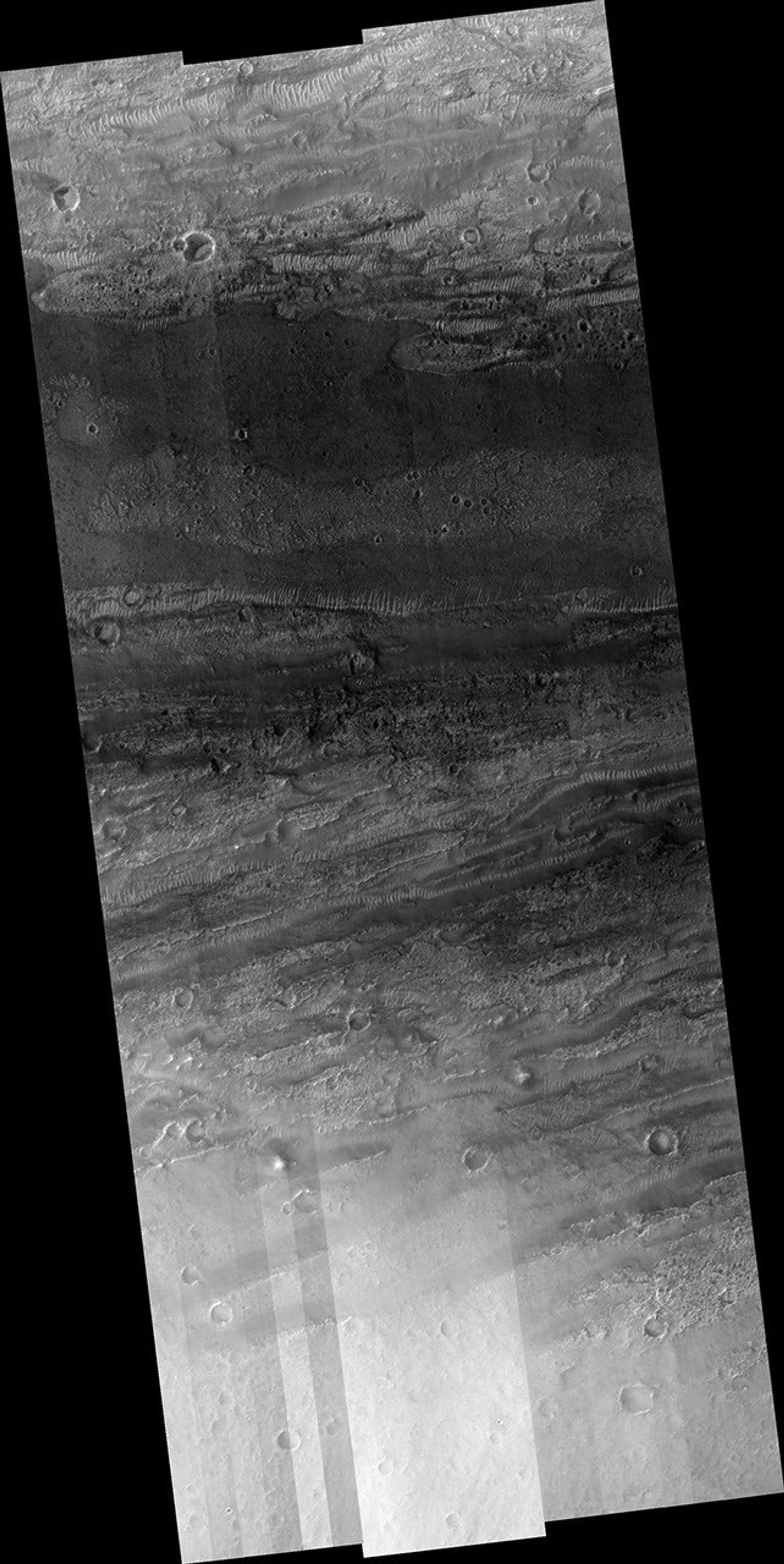 Image PSP_001482_2065 was taken by the High Resolution Imaging Science Experiment (HiRISE) camera onboard the Mars Reconnaissance Orbiter spacecraft on November 19, 2006. The complete image is centered at 26.0 degrees latitude, 297.3 degrees East longitude. The range to the target site was 284.7 km (178.0 miles). At this distance the image scale ranges from 28.5 cm/pixel (with 1 x 1 binning) to 113.9 cm/pixel (with 4 x 4 binning). The image shown here has been map-projected to 25 cm/pixel and north is up. The image was taken at a local Mars time of 3:26 PM and the scene is illuminated from the west with a solar incidence angle of 49 degrees, thus the sun was about 41 degrees above the horizon. At a solar longitude of 137.9 degrees, the season on Mars is Northern Summer.