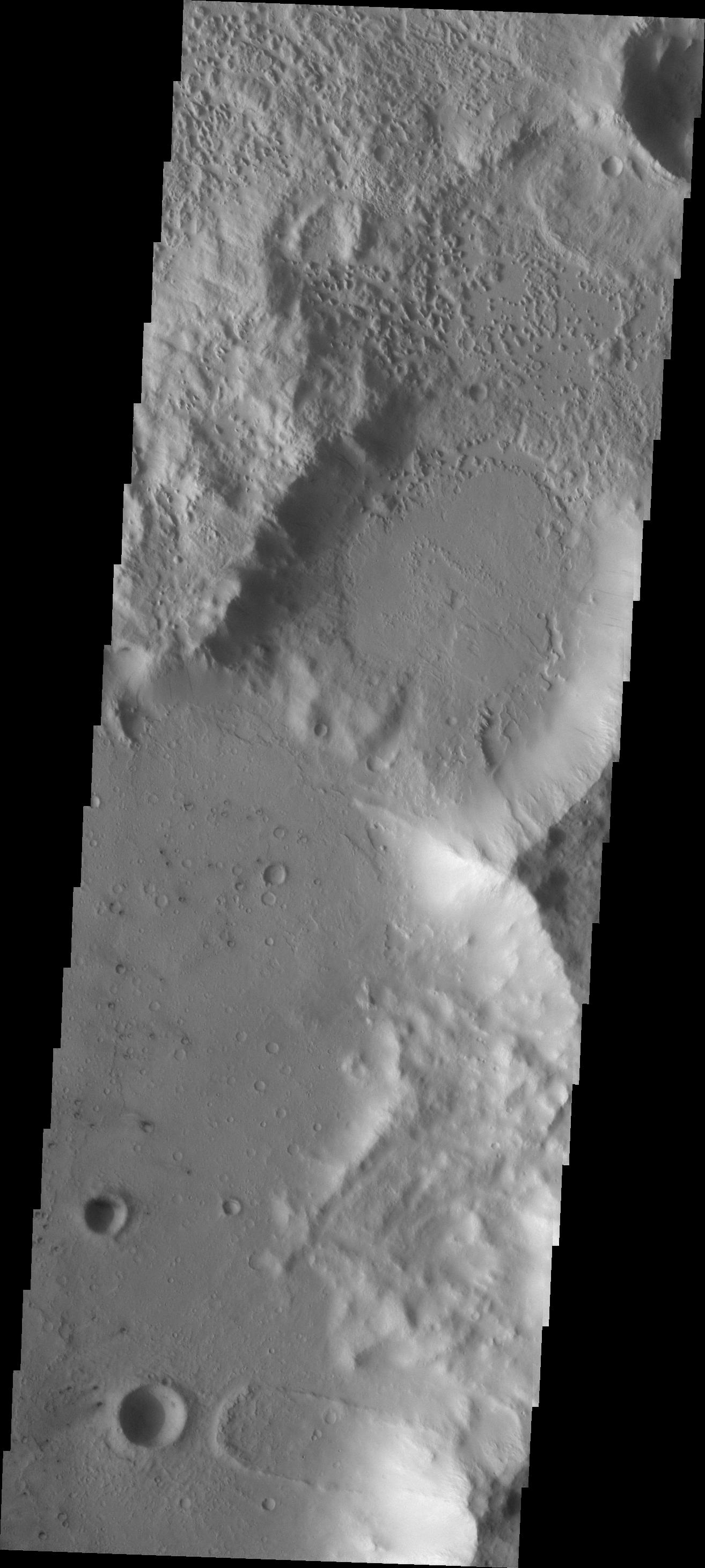 Note: this THEMIS visual image has not been radiometrically nor geometrically calibrated for this preliminary release. An empirical correction has been performed to remove instrumental effects. A linear shift has been applied in the cross-track and down-track direction to approximate spacecraft and planetary motion. Fully calibrated and geometrically projected images will be released through the Planetary Data System in accordance with Project policies at a later time.