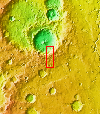 The landslide deposit in this VIS image is located in an unnamed crater in Xanthe Terra.