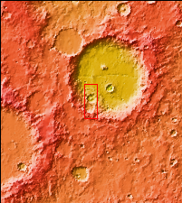Today's VIS image shows two small landslide deposits within a crater. Located in Terra Sirenum, the two craters in this image are located on the floor of the much larger Columbus Crater. The youngest crater in the image is the one in the center. It is possible that the impact that created that crater caused the landslides in the older crater.