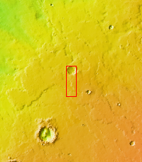 The lava flows in today's VIS image are located on the northeastern margin of Daedalia Planum. Wind deposits are visible in the lee of the flow fronts.