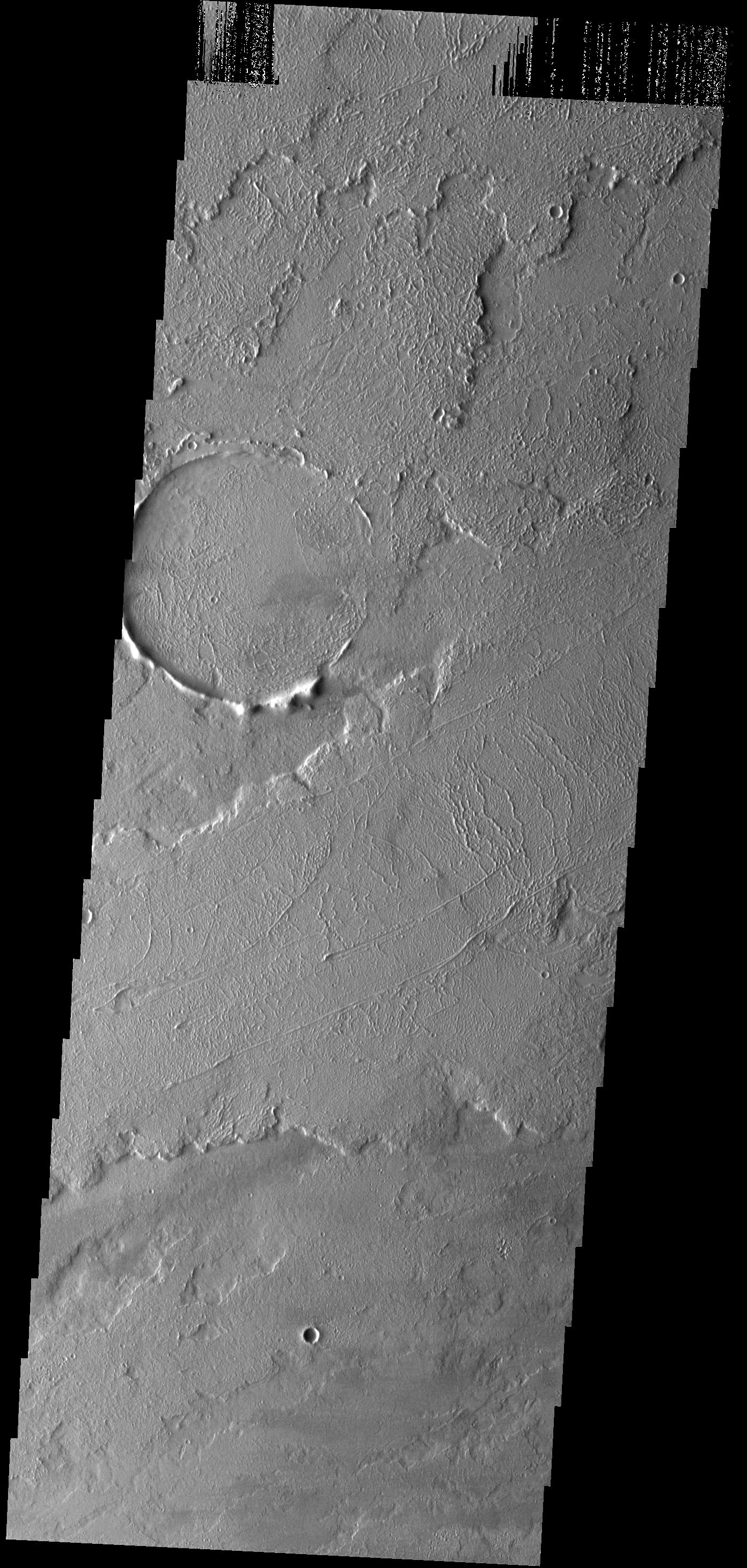 These lava flows are located to the northeast of Tharsis Tholus.