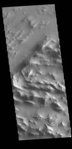 Lycus Sulci is a low lying area of ridges and valleys found to the northwest of Olympus Mons. It is not yet understood how this feature formed or how it relates to the formation of Olympus Mons itself. This VIS image shows the ridge forms that are typical of this region.