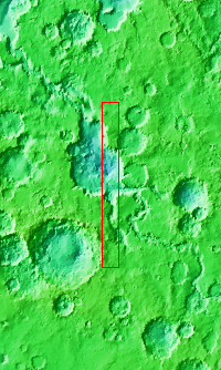 Today's VIS image shows a section of Mamers Valles where it enters into Ismenius Cavus. The channel is nearly 1000 km long (600 miles). Mamers Valles originates near Cerulli Crater in northern Arabia Terra, and after a short section near the crater where flow is to the south, flows northward to empty in Deuteronilus Mensae. The steep walls of Mamers Valles can reach heights of 1200 m (4000 feet).