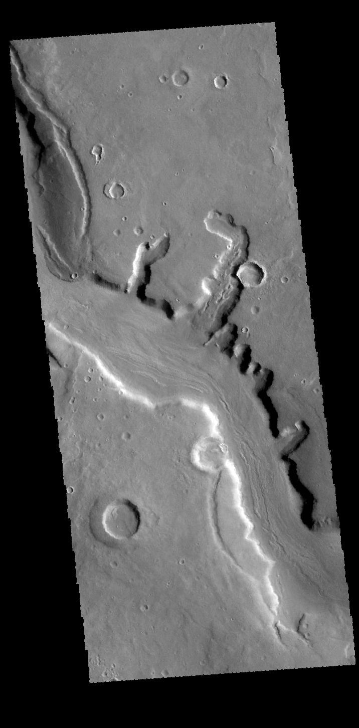 This VIS image shows a small portion of Mamers Valles. Mamers Valles is a large complex set of channels in northern Arabia Terra that flow into Acidalia Planitia.