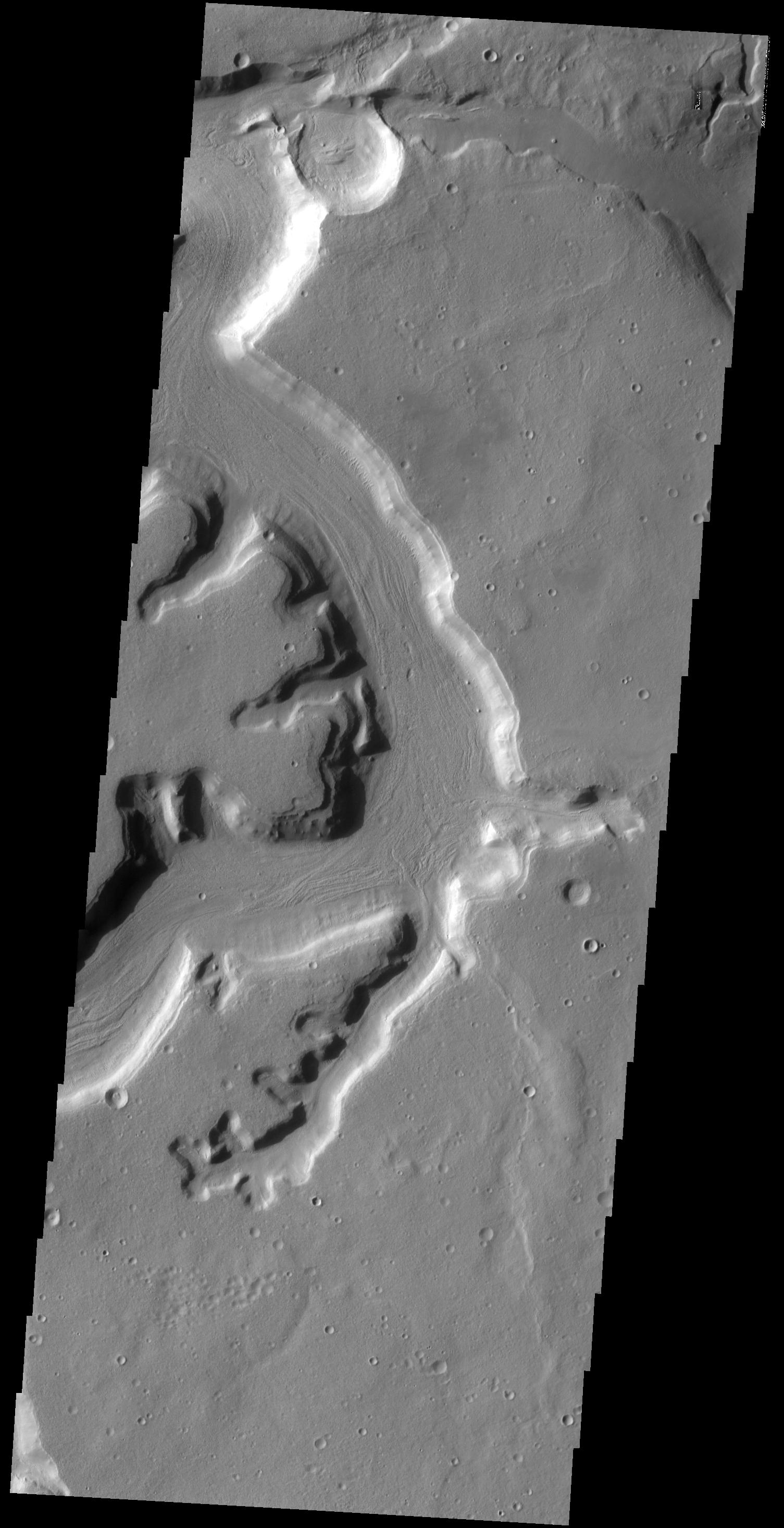 The channels in this VIS image are part of a complex valley system called Mamers Valles. Mamers Valles is located on the northern margin of Arabia Terra.