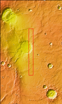The circular feature in today's VIS image is called Meroe Patera. It is a volcanic caldera located in Syrtis Major Planum. The volcanic activity in Syrtis Major Planum is thought to be related to the impact event that created Isidis Planitia to the east.