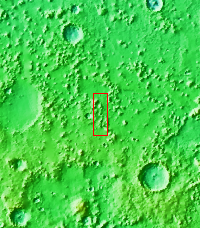 Between the highlands of Terra Cimmeria and the low plains of Elysium Planitia and Nepenthes Planum lies the rugged region called Nepenthes Mensae. Hills in this region vary in height and the surrounding surface can vary greatly in texture - from dune forms to low ridges to smooth.