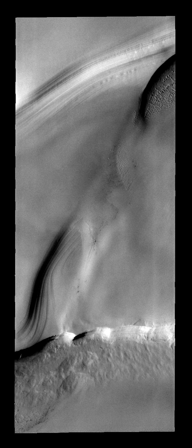 This image of the north polar layered deposits also contains sand dunes.
