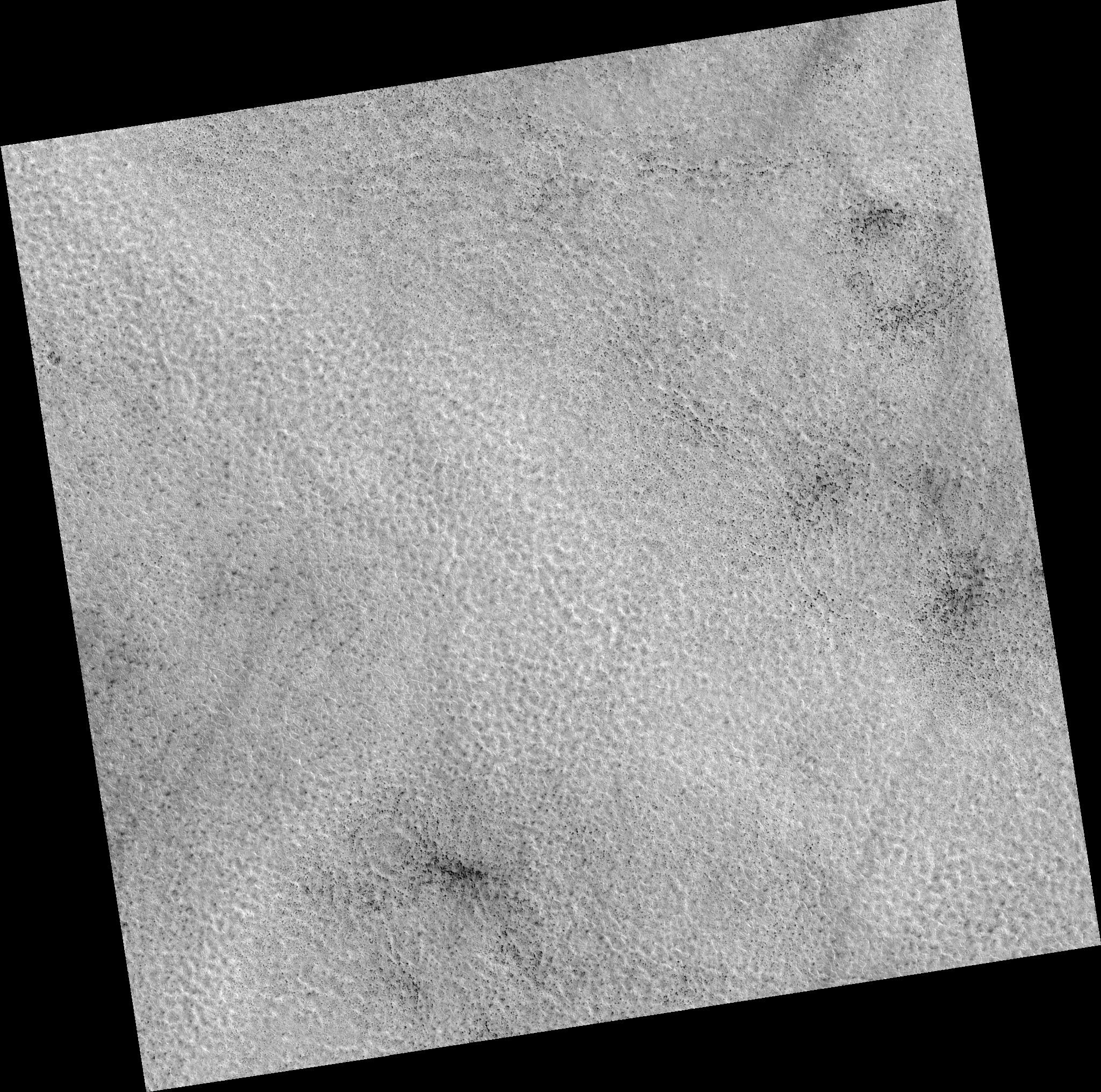 Image PSP_001467_2490 was taken by the High Resolution Imaging Science Experiment (HiRISE) camera onboard the Mars Reconnaissance Orbiter spacecraft on November 18, 2006. The complete image is centered at 68.7 degrees latitude, 337.8 degrees East longitude. The range to the target site was 314.0 km (196.2 miles). At this distance the image scale is 31.4 cm/pixel (with 1 x 1 binning) so objects ~94 cm across are resolved. The image shown here has been map-projected to 25 cm/pixel. The image was taken at a local Mars time of 3:04 PM and the scene is illuminated from the west with a solar incidence angle of 59 degrees, thus the sun was about 31 degrees above the horizon. At a solar longitude of 137.4 degrees, the season on Mars is Northern Summer.