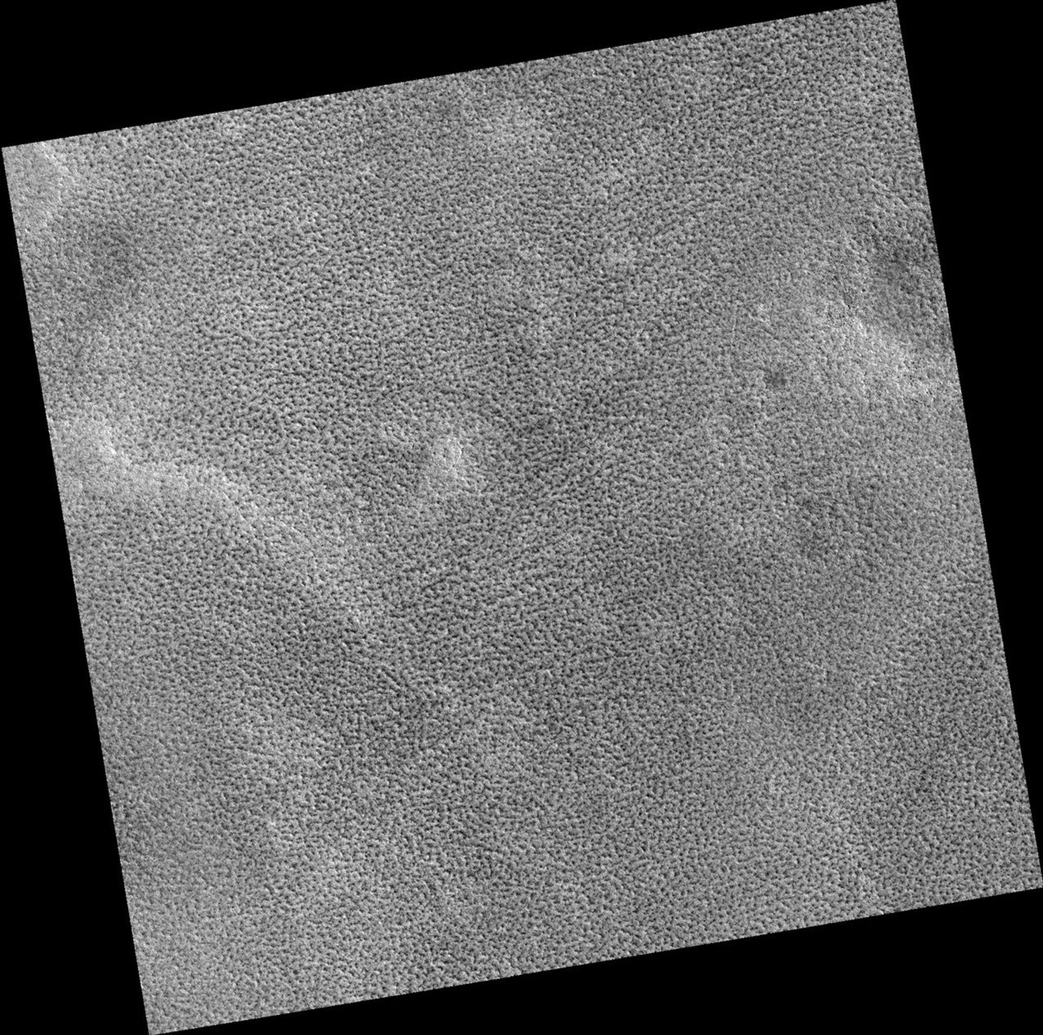 Image PSP_001445_2510 was taken by the High Resolution Imaging Science Experiment (HiRISE) camera onboard the Mars Reconnaissance Orbiter spacecraft on November 17, 2006. The complete image is centered at 70.5 degrees latitude, 216.9 degrees East longitude. The range to the target site was 314.3 km (196.4 miles). At this distance the image scale is 31.4 cm/pixel (with 1 x 1 binning) so objects ~94 cm across are resolved. The image shown here has been map-projected to 25 cm/pixel. The image was taken at a local Mars time of 3:01 PM and the scene is illuminated from the west with a solar incidence angle of 60 degrees, thus the sun was about 30 degrees above the horizon. At a solar longitude of 136.5 degrees, the season on Mars is Northern Summer.