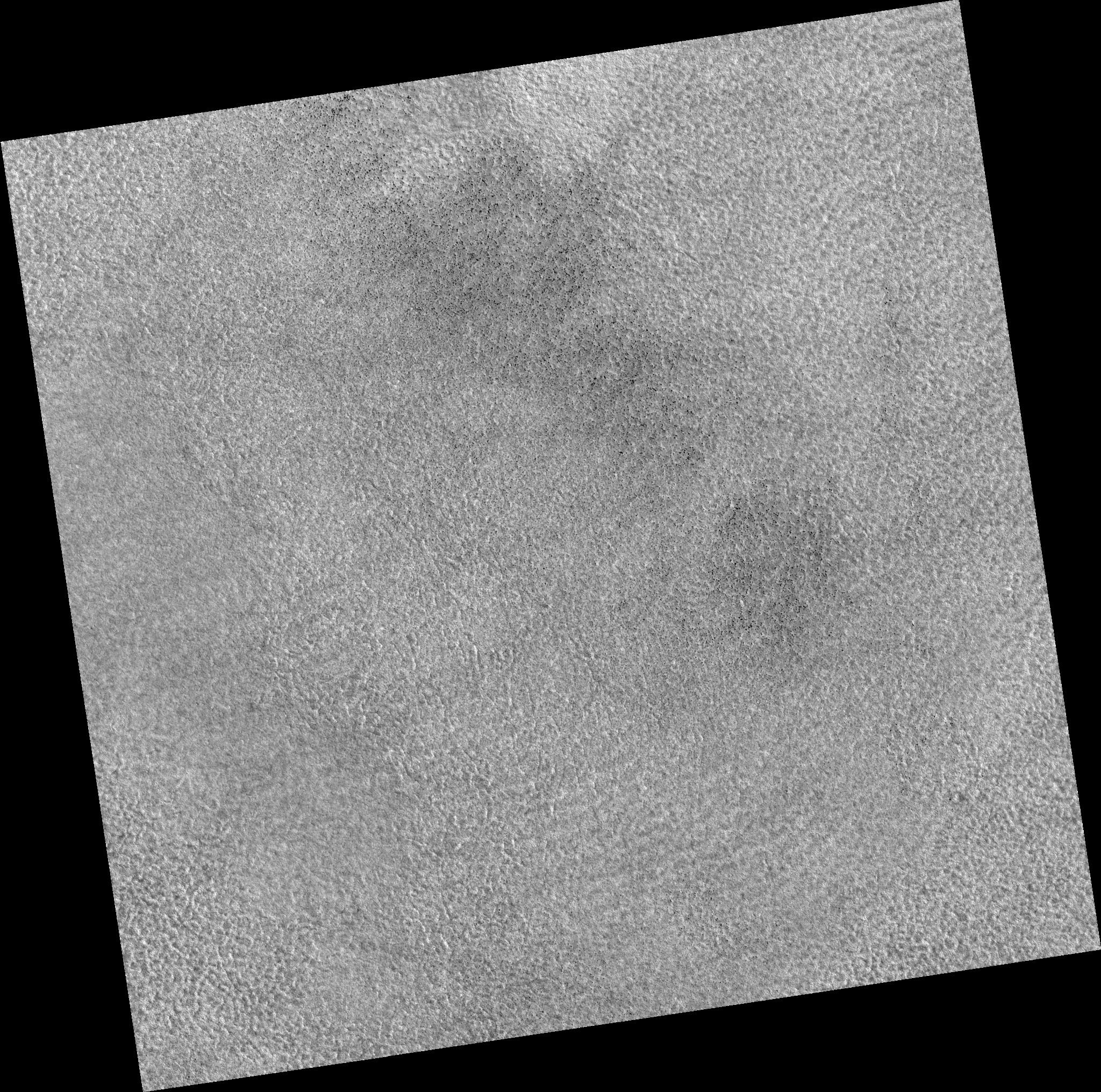 Image PSP_001381_2485 was taken by the High Resolution Imaging Science Experiment (HiRISE) camera onboard the Mars Reconnaissance Orbiter spacecraft on November 12, 2006. The complete image is centered at 68.4 degrees latitude, 164.2 degrees East longitude. The range to the target site was 315.5 km (197.2 miles). At this distance the image scale is 31.6 cm/pixel (with 1 x 1 binning) so objects ~95 cm across are resolved. The image shown here has been map-projected to 25 cm/pixel. The image was taken at a local Mars time of 3:05 PM and the scene is illuminated from the west with a solar incidence angle of 58 degrees, thus the sun was about 32 degrees above the horizon. At a solar longitude of 134.1 degrees, the season on Mars is Northern Summer.