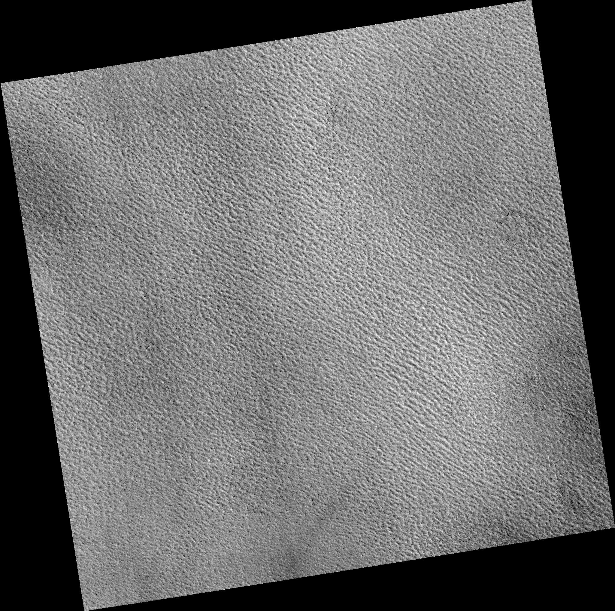 Image PSP_001482_2490 was taken by the High Resolution Imaging Science Experiment (HiRISE) camera onboard the Mars Reconnaissance Orbiter spacecraft on November 19, 2006. The complete image is centered at 68.8 degrees latitude, 288.4 degrees East longitude. The range to the target site was 313.9 km (196.2 miles). At this distance the image scale is 31.4 cm/pixel (with 1 x 1 binning) so objects ~94 cm across are resolved. The image shown here has been map-projected to 25 cm/pixel. The image was taken at a local Mars time of 3:04 PM and the scene is illuminated from the west with a solar incidence angle of 60 degrees, thus the sun was about 30 degrees above the horizon. At a solar longitude of 138.0 degrees, the season on Mars is Northern Summer.
