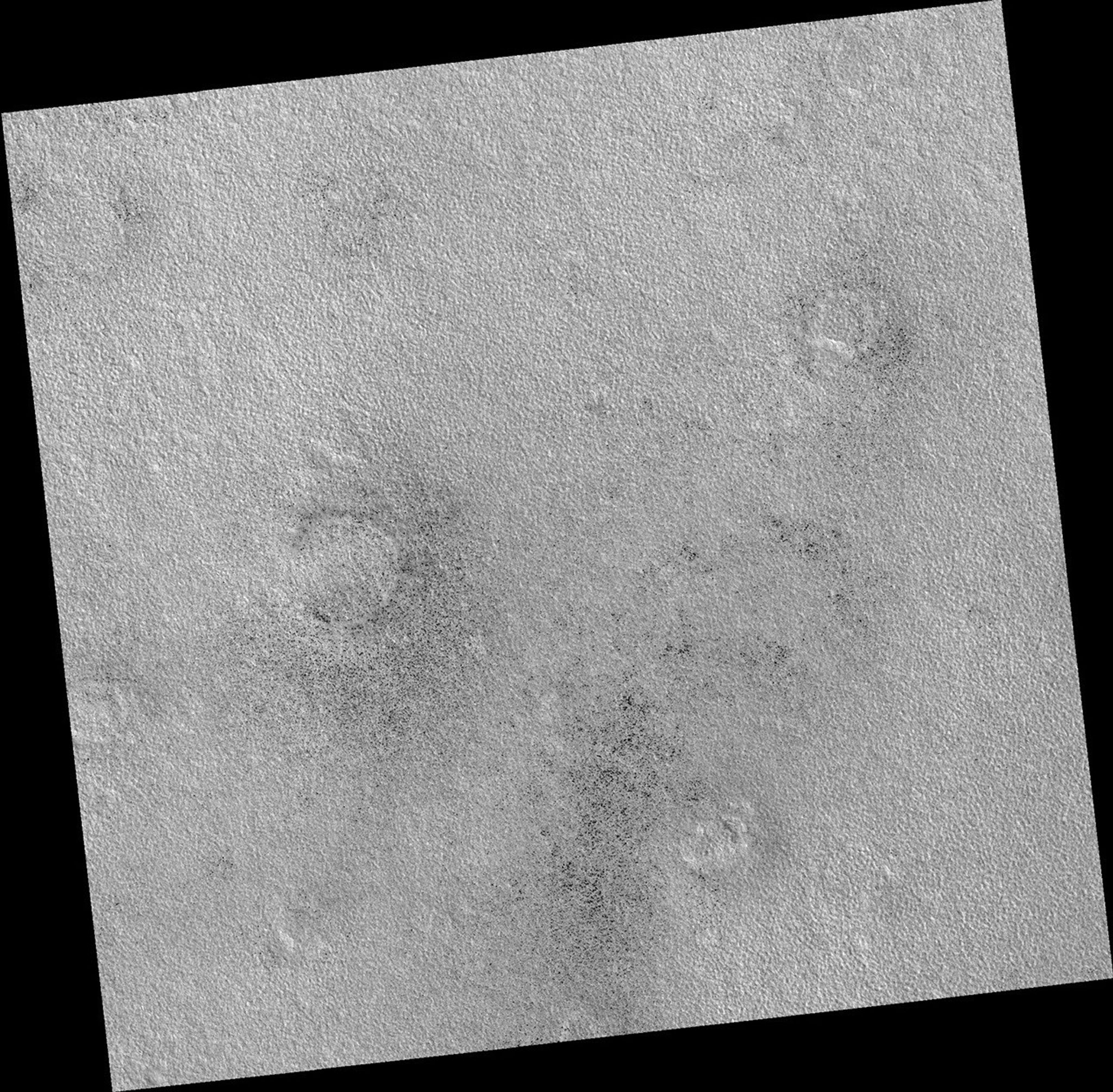 Image PSP_001475_2465 was taken by the High Resolution Imaging Science Experiment (HiRISE) camera onboard the Mars Reconnaissance Orbiter spacecraft on November 19, 2006. The complete image is centered at 66.2 degrees latitude, 122.4 degrees East longitude. The range to the target site was 316.3 km (197.7 miles). At this distance the image scale is 31.6 cm/pixel (with 1 x 1 binning) so objects ~95 cm across are resolved. The image shown here has been map-projected to 25 cm/pixel. The image was taken at a local Mars time of 3:15 PM and the scene is illuminated from the west with a solar incidence angle of 59 degrees, thus the sun was about 31 degrees above the horizon. At a solar longitude of 137.7 degrees, the season on Mars is Northern Summer.