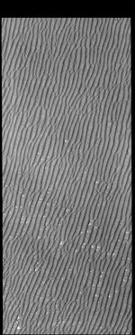 Today's VIS image is part of Olympia Undae. Compare this to previous images and notice how uniform the dunes are in this region.