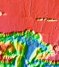 This VIS image of Ophir Chasma shows part of a large landslide deposit.