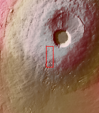 Today's VIS image shows part of the southern flank of Pavonis Mons. Visible at the bottom of the image are collapse features and lava channels.
