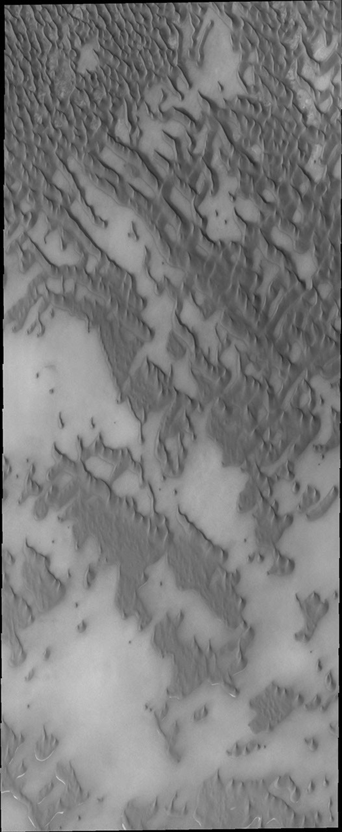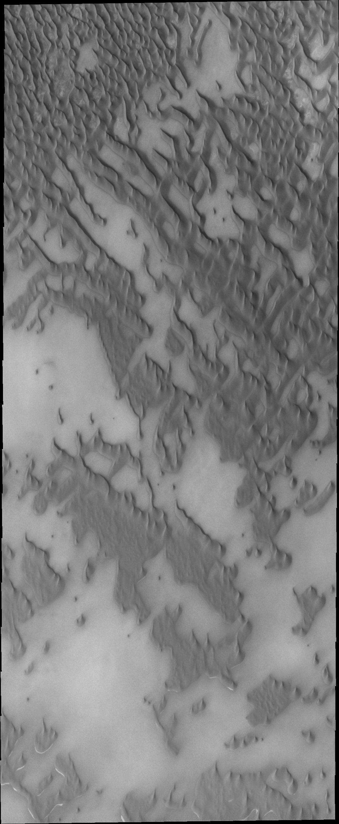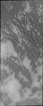 This VIS image shows part of Olympia Undae where the surface beneath the dunes is visible.