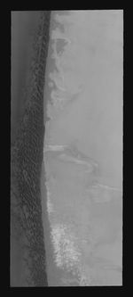 Note: this THEMIS visual image has not been radiometrically nor geometrically calibrated for this preliminary release. An empirical correction has been performed to remove instrumental effects. A linear shift has been applied in the cross-track and down-track direction to approximate spacecraft and planetary motion. Fully calibrated and geometrically projected images will be released through the Planetary Data System in accordance with Project policies at a later time.