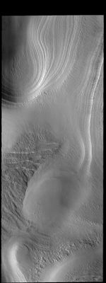 This image captured by NASA's 2001 Mars Odyssey spacecraft shows some of the multiple layers of ice that make up the South Polar cap.