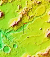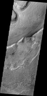 Several large channels empty into eastern Hellas Basin. These southern channels are filled with material today. Whether the material contains volitiles (like ice) is unknown.