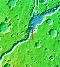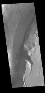Today's VIS image shows a portion of Shalbatana Vallis. Located in Xanthe Terra, Shalbatana Vallis is an outflow channel carved by massive floods of escaping groundwater whose source lies far to the south of this image. Shalbatana Vallis is over 1300 km long (808 miles). This channel, and all others in this region, drain into Chryse Planitia. A small landslide deposit is visible at the bottom of the image.