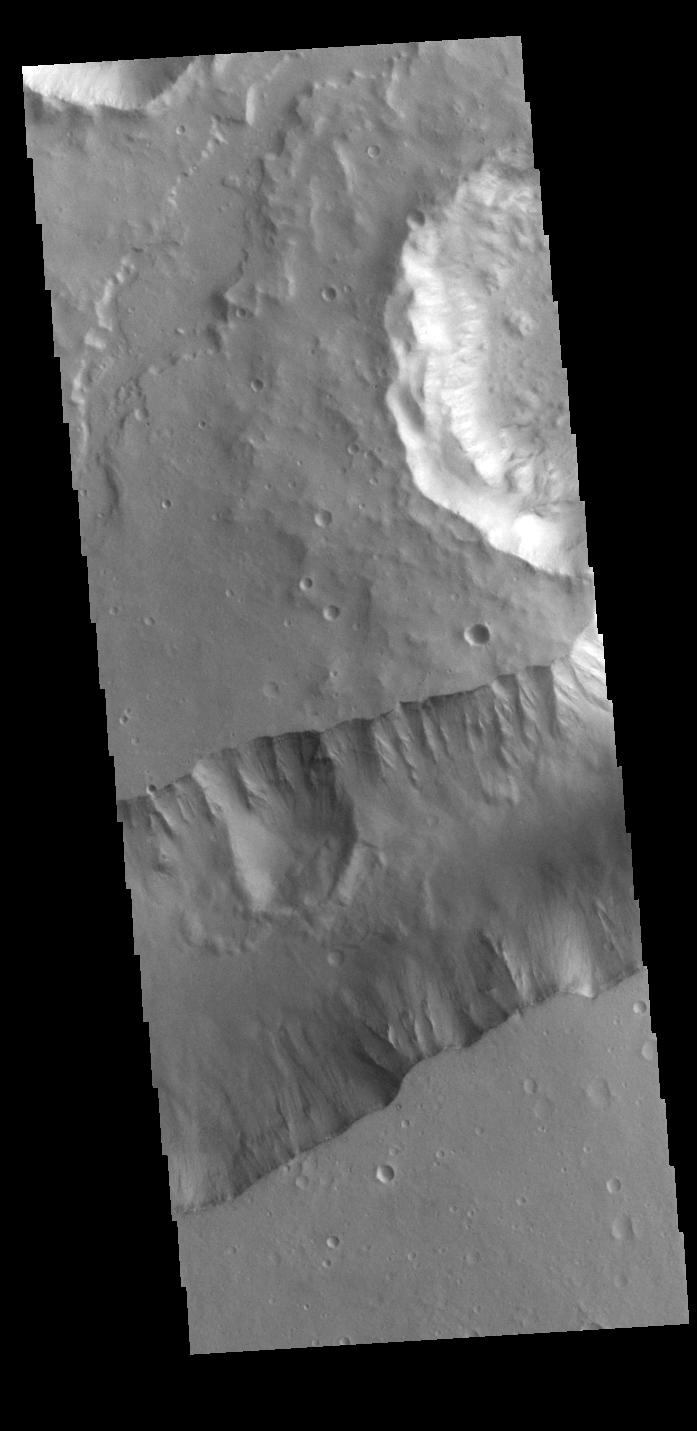 The steep sided depression in this VIS image is Shalbatana Vallis, a channel located in Xanthe Terra.