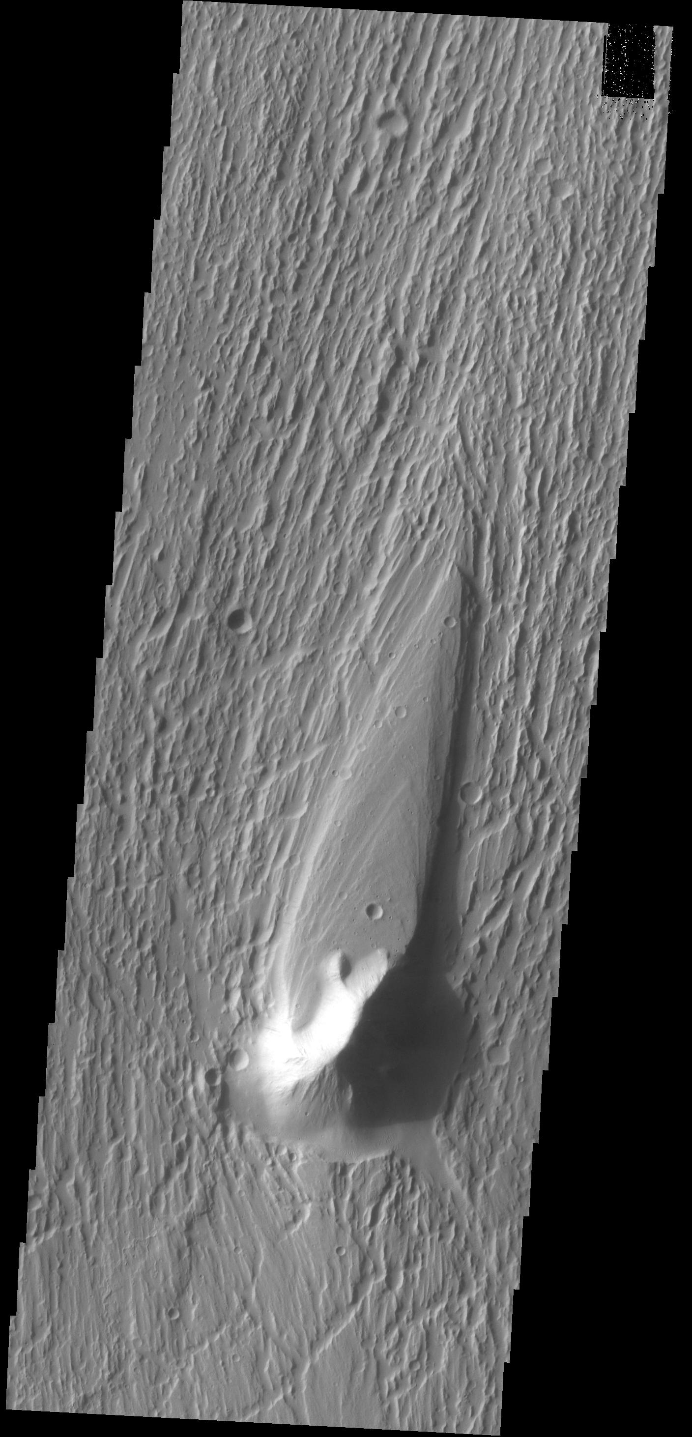 Today's VIS image shows a streamlined island in Kasei Valles. The teardrop shape indicates that flow was from the bottom to the top of the image. Kasei Valles is one of the largest channel system on Mars, starting in Echus Chasma and emptying into Chryse Planitia.