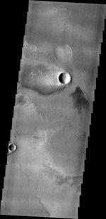 The windstreak in today's VIS image is located on the volcanic flows of Daedalia Planum.