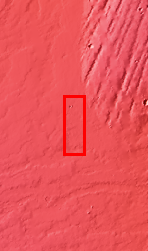 Located on the extensive volcanic flows of the Tharsis region, this individual windstreak indicates wind direction in this region.