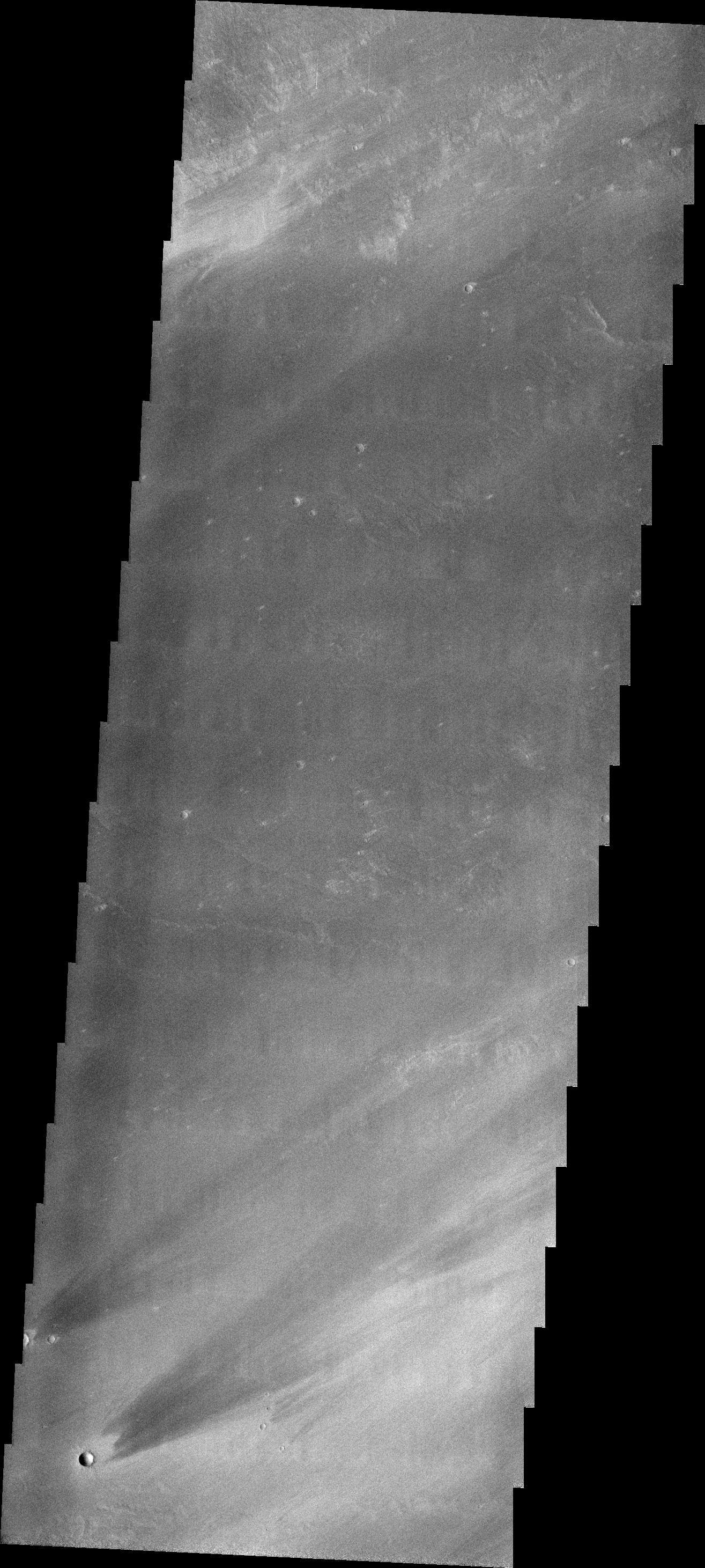 The windstreaks in today's VIS image are located on Tharsis volcanic flows east of Pavonis Mons.