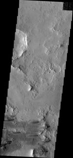 Note: this THEMIS visual image has not been radiometrically nor geometrically calibrated for this preliminary release. An empirical correction has been performed to remove instrumental effects. A linear shift has been applied in the cross-track and down-track direction to approximate spacecraft and planetary motion. Fully calibrated and geometrically projected images will be released through the Planetary Data System in accordance with Project policies at a later time.