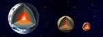An artist's impression shows the major interior layers of Earth, Mars and the Moon.