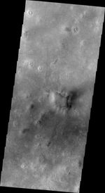 Note: this THEMIS visual image has not been radiometrically nor geometrically calibrated for this preliminary release. An empirical correction has been performed to remove instrumental effects. A linear shift has been applied in the cross-track and down-track direction to approximate spacecraft and planetary motion. Fully calibrated and geometrically projected images will be released through the Planetary Data System in accordance with Project policies at a later time.