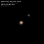 The first color movies from NASA's New Horizons mission show Pluto and its largest moon, Charon, and the complex orbital dance of the two bodies, known as a double planet. This near-true color movie was assembled from images made in three colors -- blue, red and near-infrared -- by the Multispectral Visible Imaging Camera on the instrument known as Ralph. The images were taken on nine different occasions from May 29-June 3, 2015.