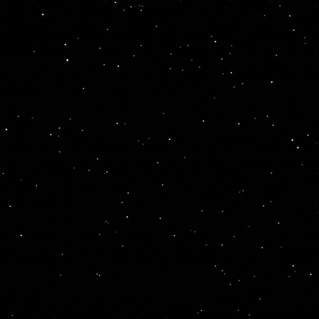Pluto is the bright dot closest to the center of the field of stars seen in this view. A labeled version of the image, indicating Pluto's position, is also presented here. The four stars identified in the labeled view have visual magnitudes between about 11 and 12.
