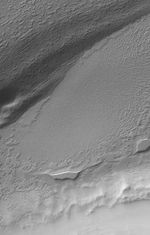 This Mars Global Surveyor (MGS) Mars Orbiter Camera (MOC) image shows eroded remnants of carbon dioxide ice in the south polar residual cap of Mars. The scarps that outline each small mesa have retreated about 3 meters (~10 feet) per Mars year since MGS began orbiting the red planet in 1997.