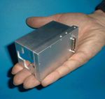 This image taken at JPL shows the Moessbauer spectrometer, an instrument on the Mars Exploration Rover Spirit that detects iron-bearing minerals in martian rocks and soil. Located on the rover's instrument deployment device, or "arm," this machine uses two pieces of radioactive cobalt-57, each about the size of pencil erasers, to determine with a high degree of accuracy the composition and abundance of iron-bearing minerals too difficult to detect by other means.
