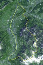 The Principality of Liechtenstein is a landlocked alpine country between Austria and Switzerland. It has an area of 160 square kilometers, and a population of about 35,000. It is ruled by a parliamentary democracy under a constitutional monarchy, headed by the Prince of Liechtenstein. Despite its limited natural resources, Liechtenstein is one of the few countries in the world with more registered companies than citizens. The country is a large producer of ceramics and is the world's largest producer of false teeth (Wickipedia). The image was acquired May 21, 2007, covers an area of 18.5 x 27.6 km, and is located at 47.1 degrees north latitude, 9.5 degrees east longitude.