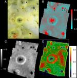 The Prometheus region of Jupiter's moon Io was imaged by the camera onboard NASA's Galileo spacecraft in July 1999 (A), and by the spacecraft's near-infrared mapping spectrometer during its October 10, 1999 flyby (B). The maps made from spectrometer data show the interplay between hot silicates on the surface and sulfur dioxide frost. Hot spots (active volcanoes) appear red in the spectrometer image (B), while sulfur dioxide frost appears blue. Hot spots known from prior observations are labeled 1 (Prometheus), 5 (Camaxtli), 7 (Tupan) and 8 (Culann). Hot spots labeled 2,3, 4, and 6 were first discovered in this observation. The color bar scale in (B) represents radiance in units of solar irradiance/pi. The sulfur dioxide deposition ring around Prometheus is clearly seen in the center of the image, formed as sulfur dioxide from the currently active plume condenses away from the vent. Image (C) is a map of the relative band-depth of the sulfur dioxide absorption band that is detected by the spectrometer. Image (D) is a qualitative map of the distribution of sulfur dioxide frost on the surface. The color bar in (D) represents the fractional area covered by sulfur dioxide frost. The area shown in each panel is about 1,300 km (800 miles) across.