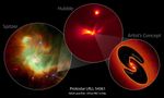 [Center] -- This Hubble Space Telescope monochromatic-color image resolves the detailed structure around the protostar, consisting of two cavities that are traced by light scattered off their edges above and below a dusty disk. The cavities were likely blown out of the surrounding natal envelope of dust and gas by an outflow launched near the central object.