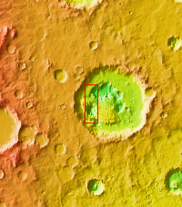 Today's VIS image shows a portion of the depression on the floor of Rabe Crater.