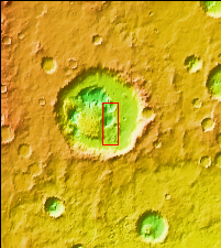 Today's VIS image shows part of the floor of Rabe Crater. Located in Noachis Terra, Rabe Crater is 108 km (67 miles) across. Dunes cover only the very upper left of this image of Rabe Crater. The sand is likely derived by erosion into the deposit that fills most of the crater floor, creating a pit which hosts the dunes. The lower elevations at the top of this image are the eroded pit. As the dunes are created by wind action the forms of the dunes record the wind direction. Dunes will have a long low angle component and a short high angle side. The steep side is called the slip face. The wind blows up the long side of the dune. In this VIS image the slip faces are illuminated less than the longer side.