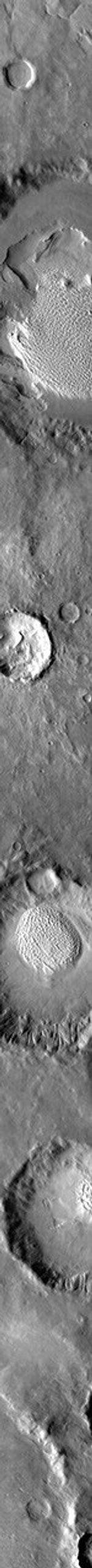This image of Rabe Crater and the region around it was collected using the IR (infrared) camera. The brighter the material, the warmer the surface is. Most dunes on Mars are dark in visible wavelengths and bright in infrared. The majority of large craters in the southern hemisphere contain dunes on the crater floor.