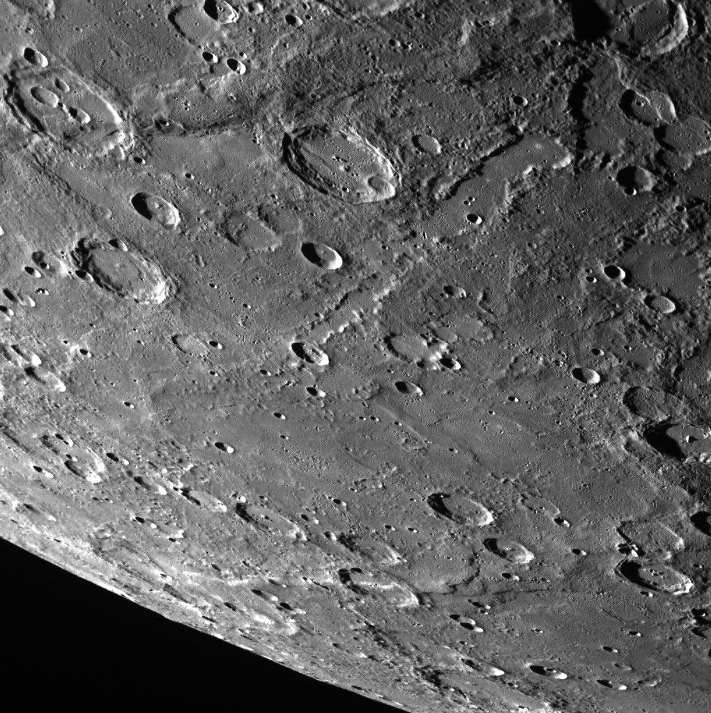 A portion of Enterprise Rupes, which cuts across the beautiful Rembrandt basin, can be seen at the top of the image featured here. Below Enterprise is a trough, filled in with smooth plains, that formed as ejecta from the Rembrandt basin impact event scoured the surface, creating what is known as "basin sculpture." Belgica Rupes is seen at the bottom of the frame.
