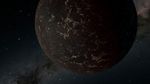 This artist's illustration depicts the exoplanet LHS 3844b, which is 1.3 times the mass of Earth and orbits an M dwarf star. The planet has no apparent atmosphere, and its surface may be covered mostly in dark lava rock, according to observations by NASA's Spitzer Space Telescope.